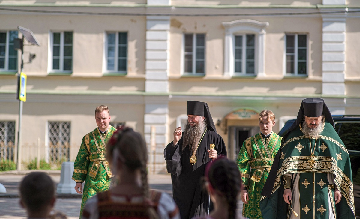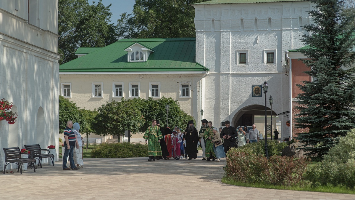 По заамвонной молитве по территории обители был совершён праздничный крестный ход. В завершение богослужения сослужившее духовенство и миряне поблагодарили епископа Кирилла за архипастырский визит и подарили ему на память выполненную в федоскинском стиле икону основателей Николо-Пешношской обители – преподобных Сергия Радонежского и Мефодия Пешношского. Затем владыка обратился к молящимся с проповедью.